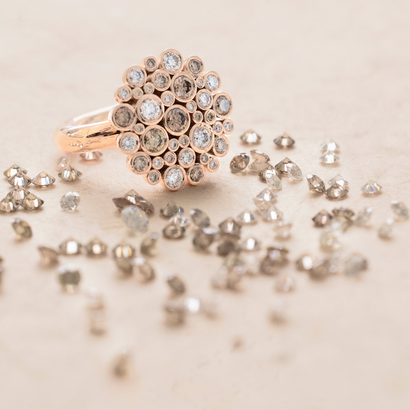 Diamant is de ultieme edelsteen: sprankelend, krachtig en onverwoestbaar. Bekend om zijn ongeëvenaarde schittering en symboliek van liefde en eeuwigheid, voegt diamant een luxueuze en tijdloze touch toe aan elk sieraad. Bij Bron werken we niet alleen met klassieke witte diamanten, maar ook met champagne- en blauwgekleurde diamanten voor een eigentijdse uitstraling. Onze ontwerpen bevatten vaak pavézettingen, waarin kleine diamantjes samen een sprankelend geheel vormen.