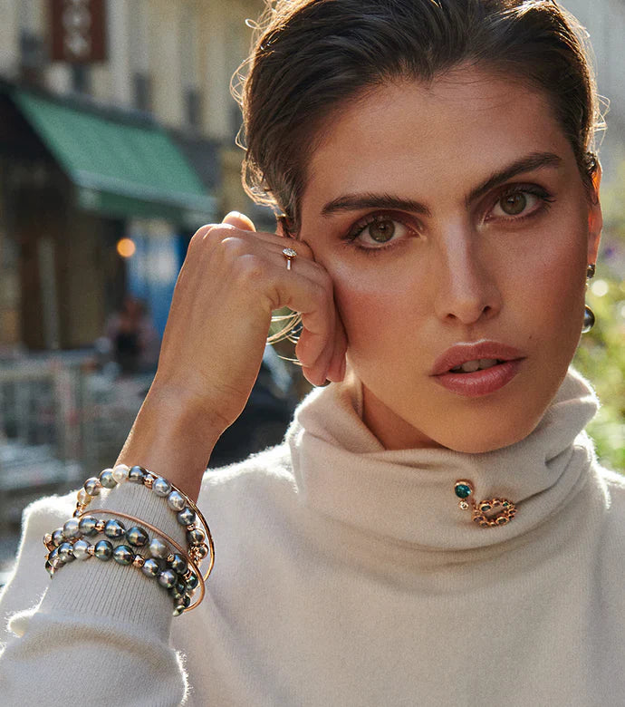 Elegant koel en tegelijkertijd speels – dompel jezelf onder in een seizoen vol Parijse flair! Paarsblauwe tinten van parel en spinel mengen zich prachtig met de warme tonen van rhodoliet en Madeira-citrien. Onweerstaanbaar chic en direct draagbaar. Ontdek nu!