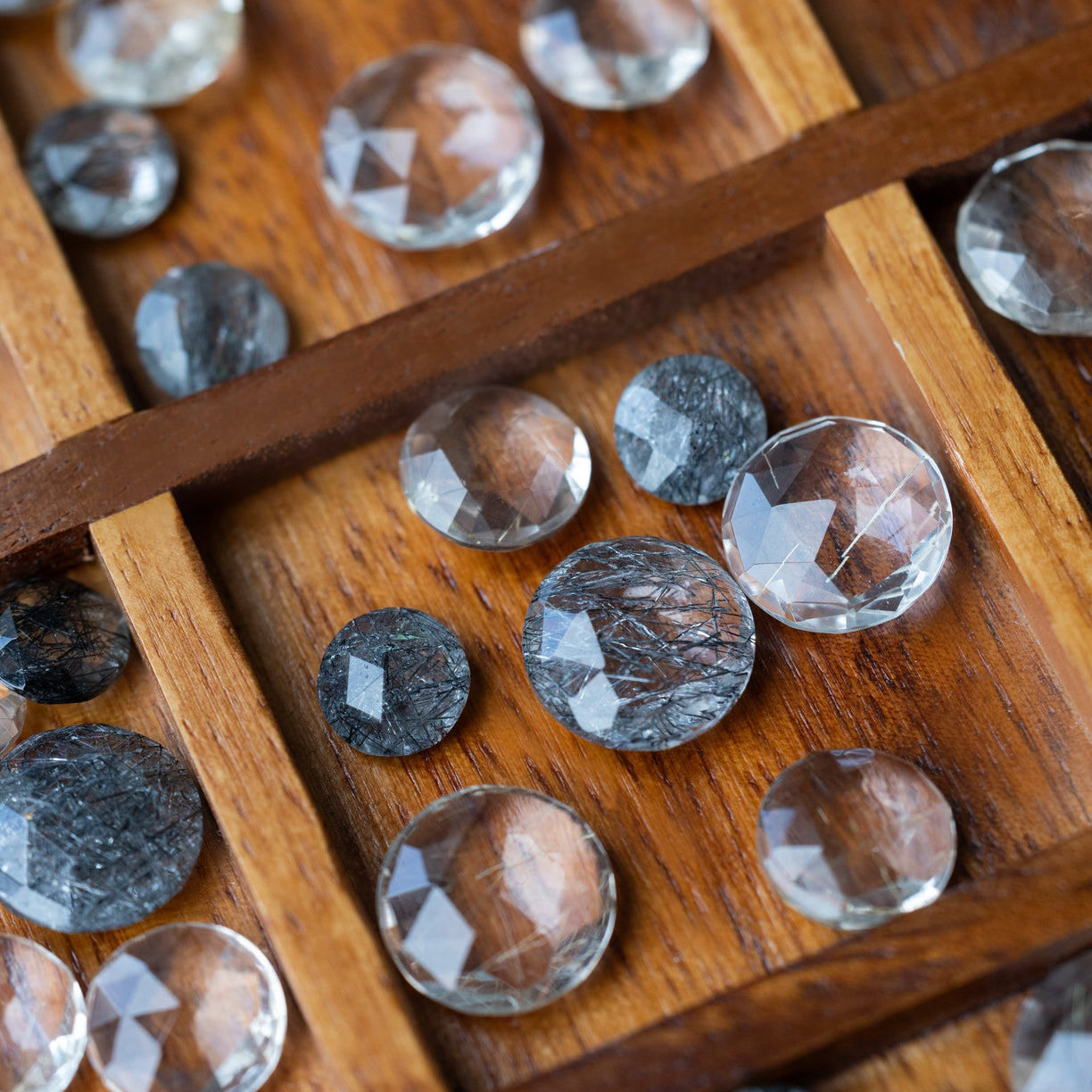 Rutielkwarts is voornamelijk afkomstig uit Brazilië en India. Via onze contacten in India hebben we ons verzekerd van een partij rutielkwarts met de juiste dichtheid van naalden in prachtige patronen.