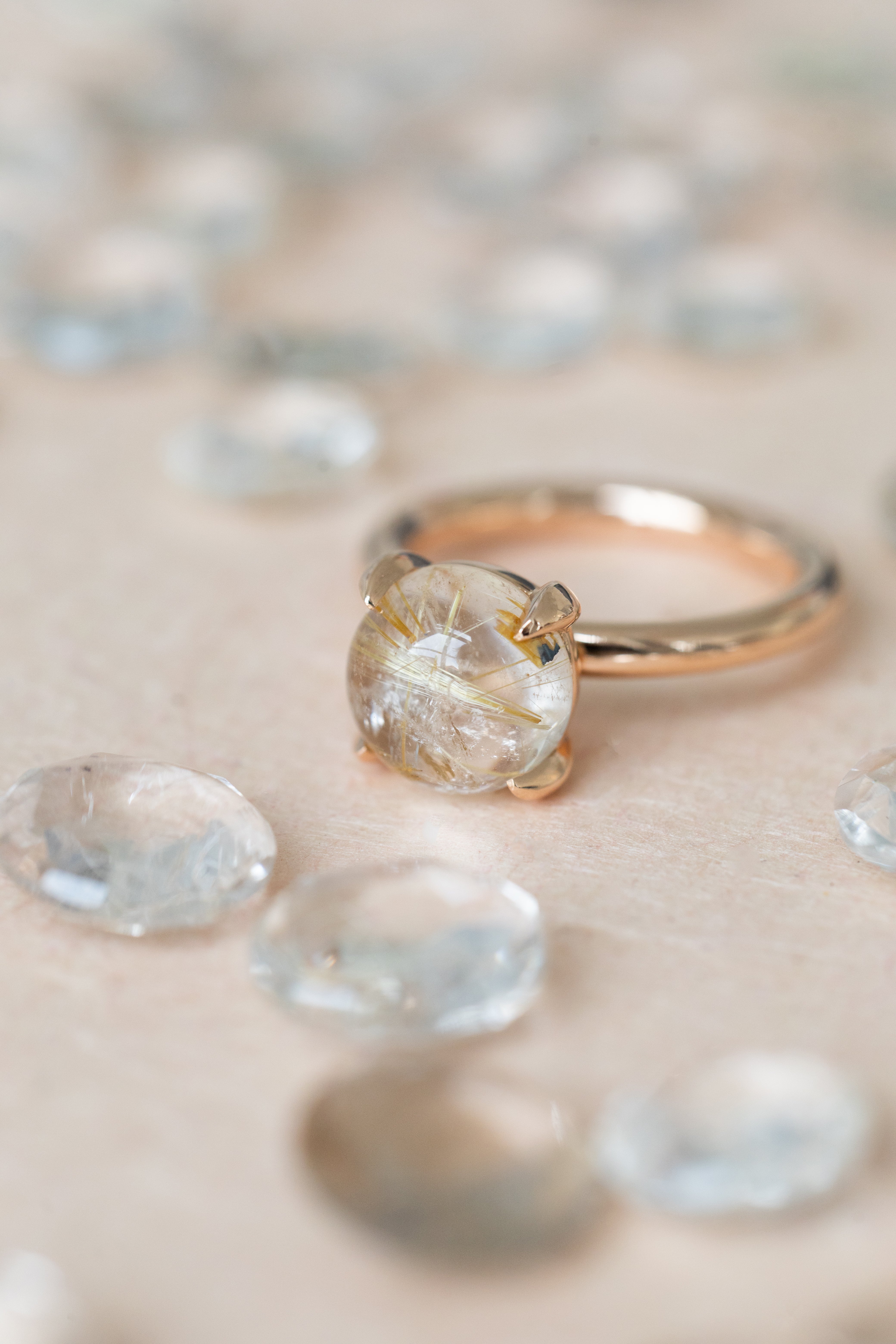 Edelstenen worden doorgaans hoger gewaardeerd naarmate ze minder insluitsels hebben. Wij vinden de ingesloten rutielnaalden juist het verschil maken. Door de speelse patronen is ieder sieraad werkelijk uniek.