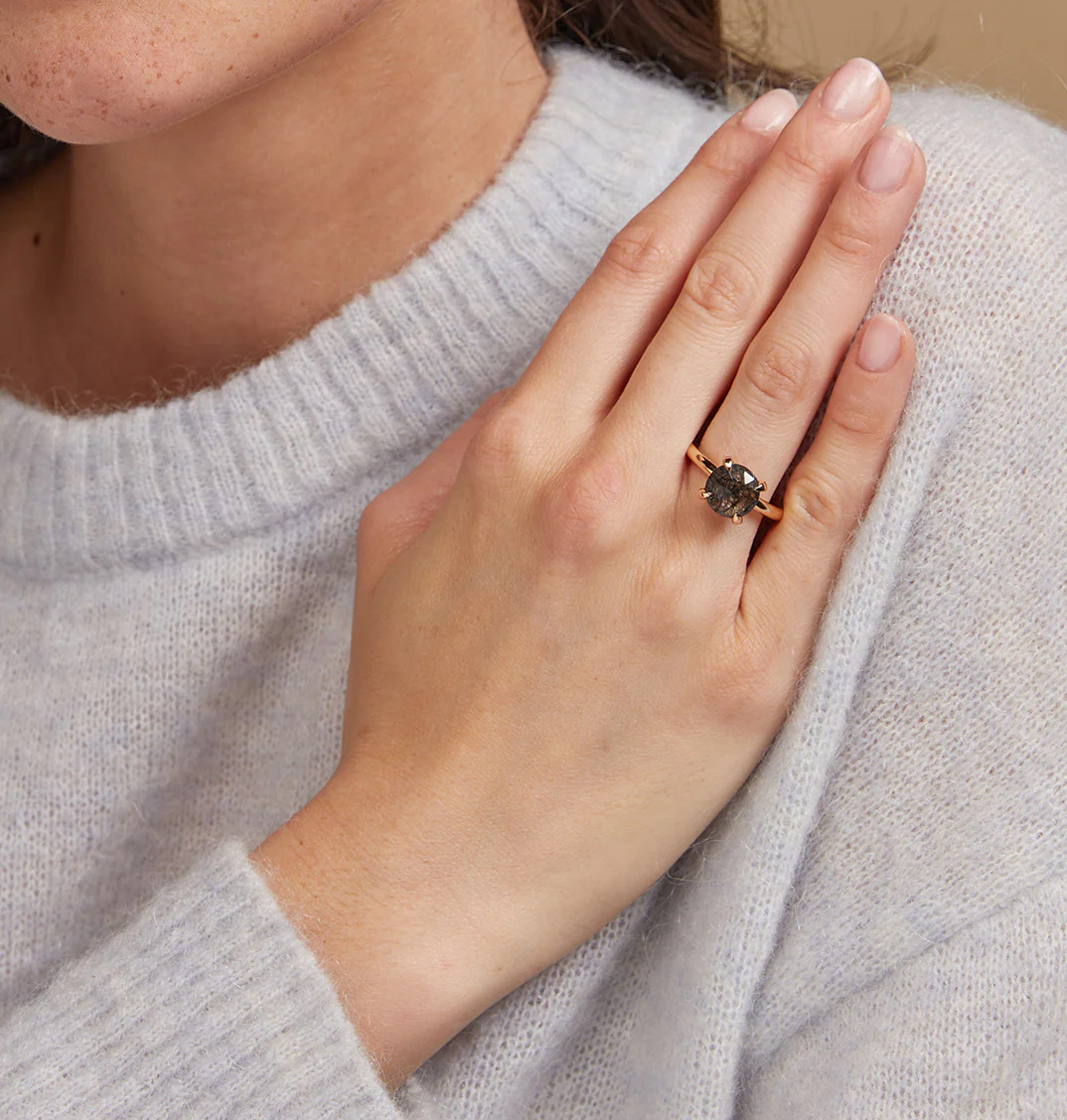 In de City Garden najaarscollectie van een paar jaar geleden worden klassieke zwart-wit tinten uit de stad opgefrist met groene accenten. Een perfecte toevoeging is rutielkwarts, met een prachtige regen van zwarte toermalijnnaalden. Combineert geweldig met zwart, denim of pasteltinten.