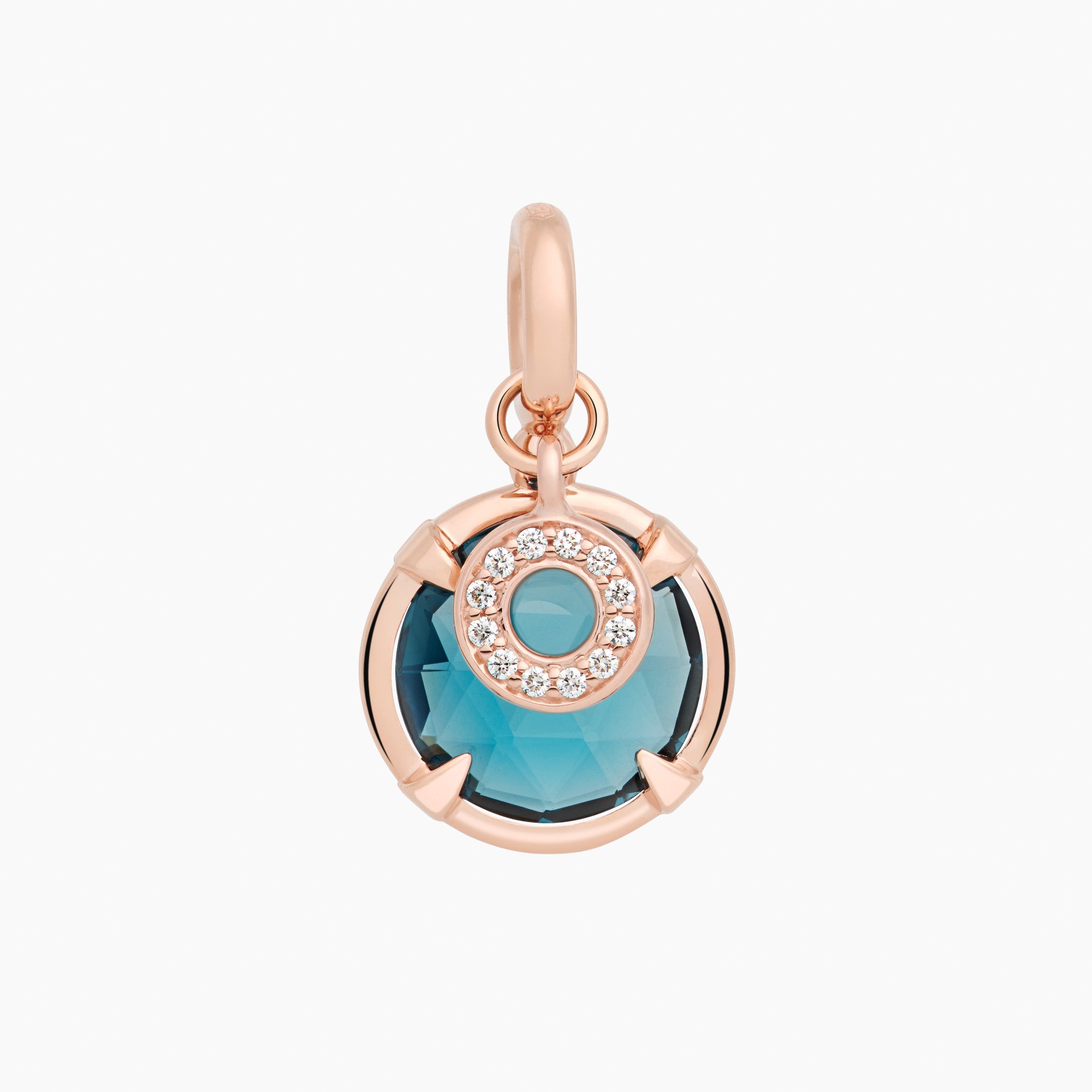 Mira Mira hanger met briolet geslepen London blue topaas vergezeld met mini Joy donut met diamant