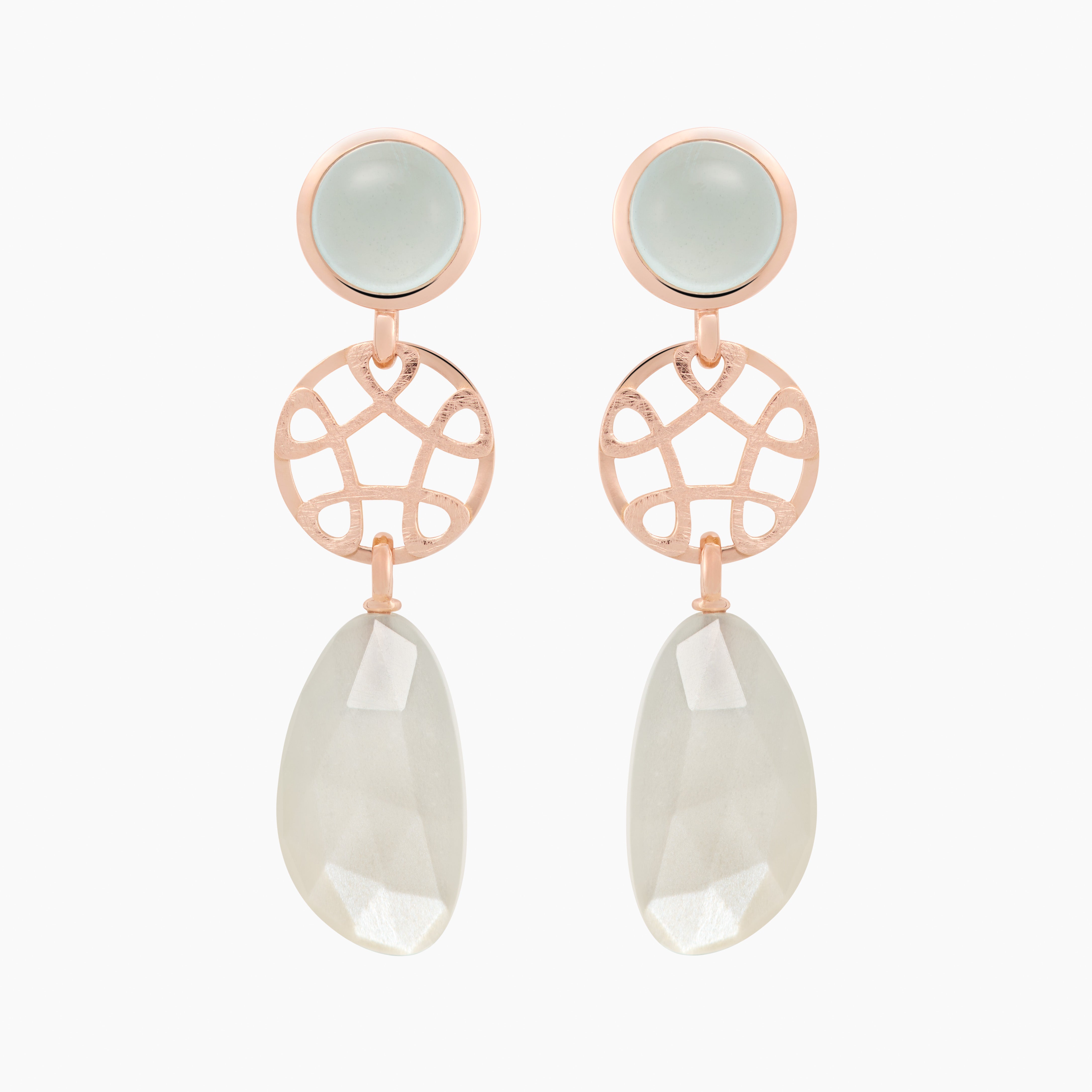De combinatie van aquamarijn met witte maansteen geeft deze oorhanger een serene en elegante uitstraling.