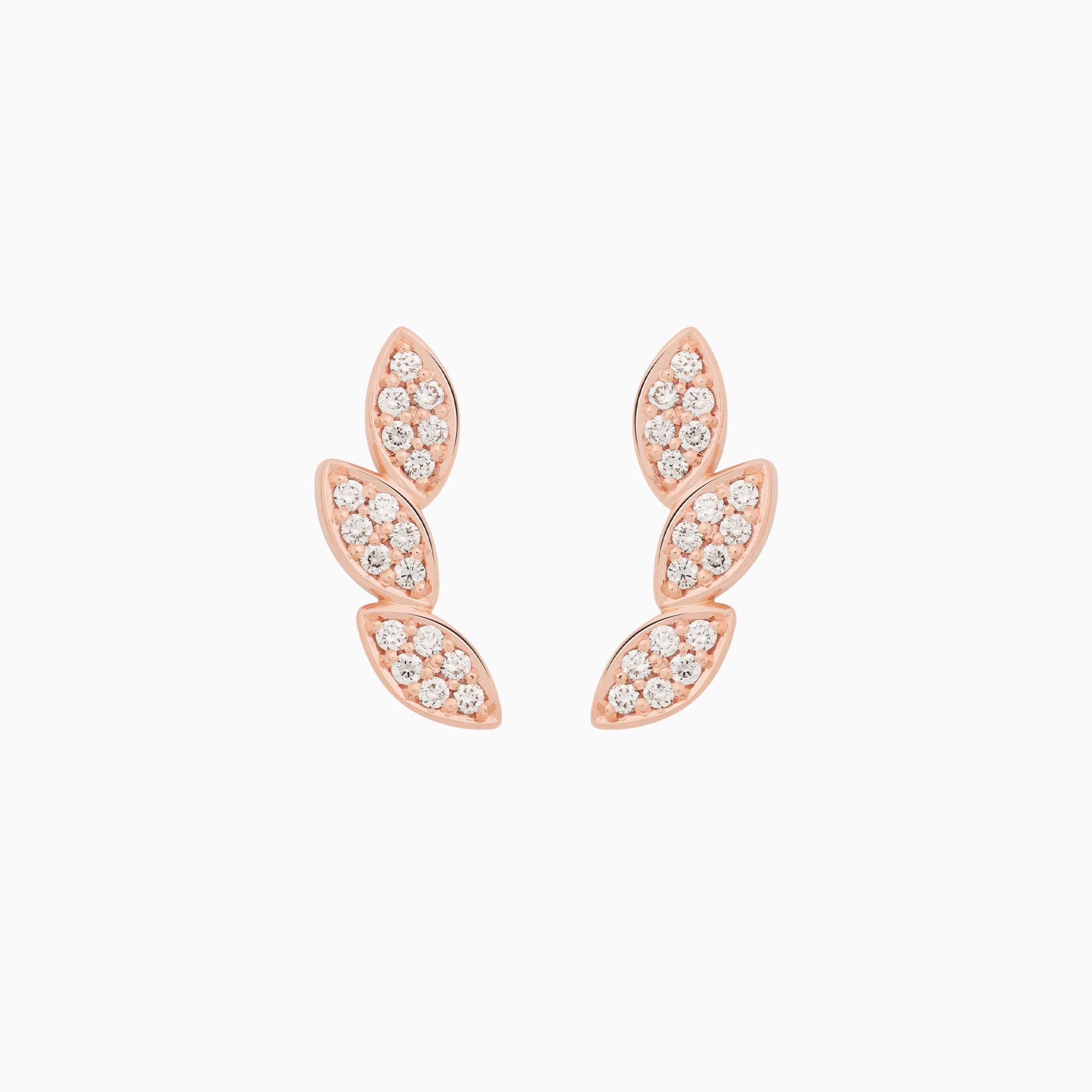 Een climber van drie kleine met diamant bezette blaadjes als oorstekertje